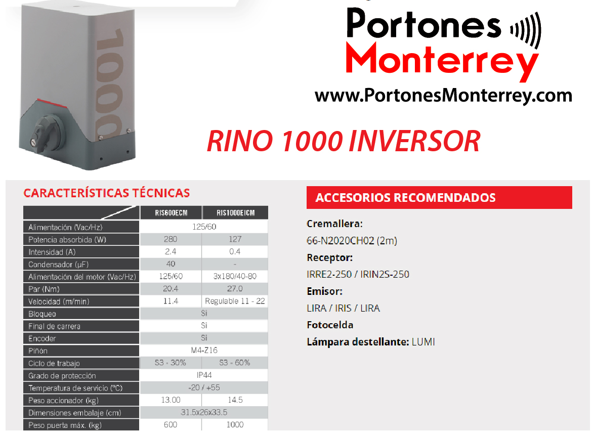 Erreka Rino 1000 INVERSOR para portones de hasta 1000kgs uso Medio intenso