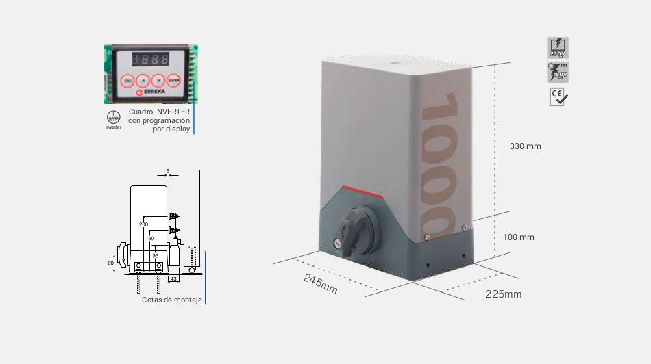 Erreka Rino 1000 INVERSOR para portones de hasta 1000kgs uso Medio intenso